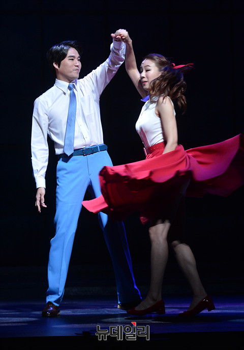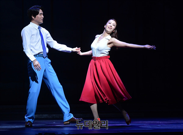 배우 정상윤과 정단아가 22일 오후 서울 강남구 광림아트센터 BBCH홀에서 열린 뮤지컬 '오!캐롤(프로듀서 박영석, 연출 한진섭, 음악감독 김성수)' 미디어콜에서 하이라이트 장면을 시연하고 있다.