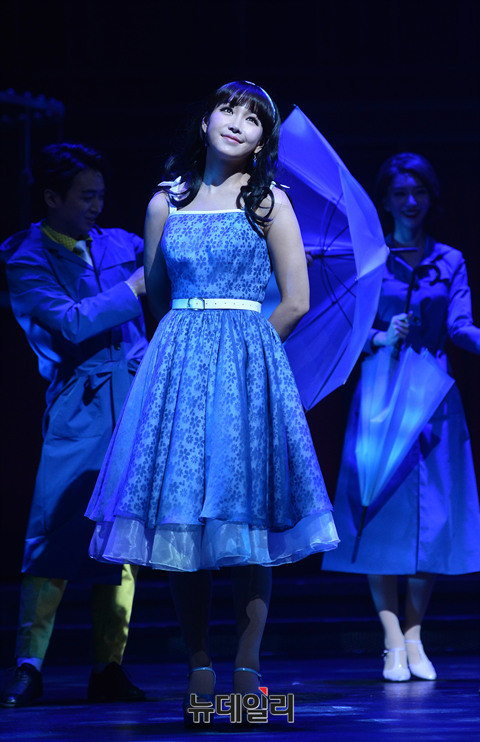 배우 이유리가 22일 오후 서울 강남구 광림아트센터 BBCH홀에서 열린 뮤지컬 '오!캐롤(프로듀서 박영석, 연출 한진섭, 음악감독 김성수)' 미디어콜에서 하이라이트 장면을 시연하고 있다. 이유리는 극 중 가수 지망생 로이스 역을 맡았다.