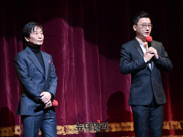 박영석 프로듀서와 한진섭(왼쪽) 연출이 22일 오후 서울 강남구 광림아트센터 BBCH홀에서 열린 뮤지컬 '오!캐롤(프로듀서 박영석, 연출 한진섭, 음악감독 김성수)' 미디어콜에서 뮤지컬을 소개하고 있다.