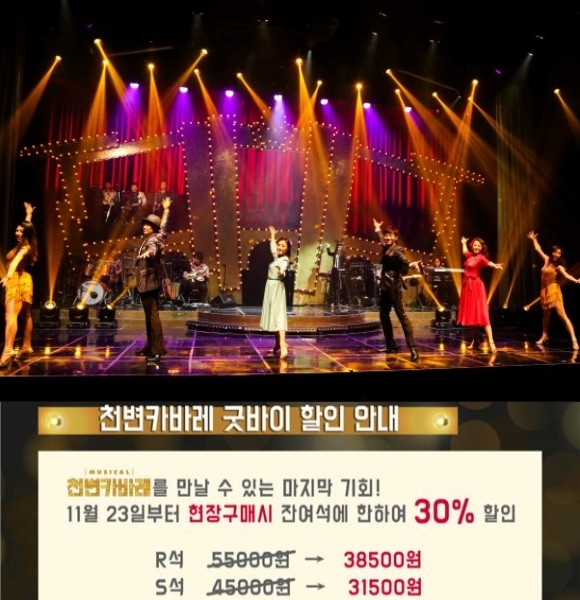 창작뮤지컬 '천변카바레'가 오는 27일 마지막 공연을 앞두고 굿바이 할인 이벤트를 펼친다.