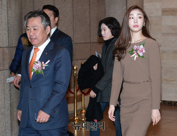 23일 서울 송파구 올림픽파크텔에서 열린 '2016 스포츠영웅 명예의 전당 헌액식'에 참석한 김연아는 시상식 직후 속개된 기자회견에서 "보도를 접하기 전까지 이런 논란이 있었다는 사실조차 알지 못했다"며 "다른 선수들 얘기도 그렇고, 일이 자꾸만 부풀려지는 것 같아 우려스럽다"는 속내를 밝혔다. -