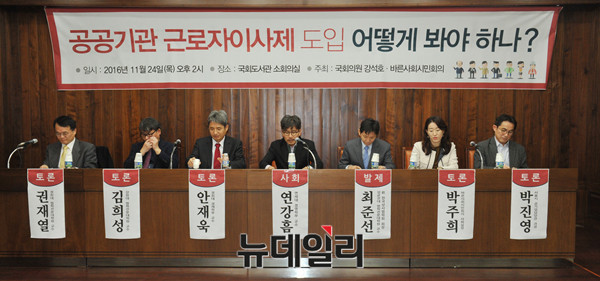 '공공기관 근로자이사제 도입, 어떻게 봐야 하나' 세미나가 24일 국회 도서관에서 새누리당 강석호 의원과 바른사회시민회의 주체로 열렸다.