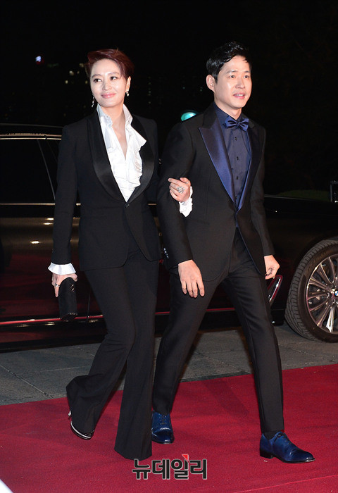 배우 유준상, 김혜수가 25일 오후 서울 동대문구 경희대학교 평화의전당에서 열린 '2016 청룡영화상' 시상식에 참석해 레드카펫을 밟고 있다. 이날 사회는 배우 유준상과 김혜수가 맡았다.