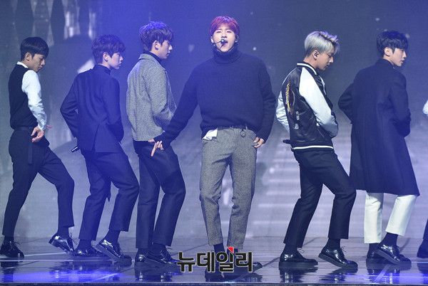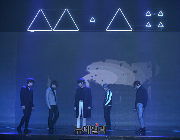 아이돌그룹 B1A4(공찬, 산들, 바로, 진영, 신우)가 28일 오후 서울 광진구 예스24라이브홀에서 열린 B1A4 정규3집 앨범 'GOOD TIMING' 쇼케이스에 참석해 인사를 하고 있다. 이날 사회는 MC딩동이 맡았다.