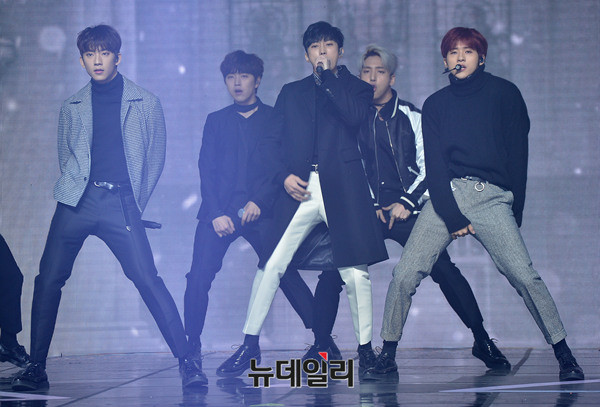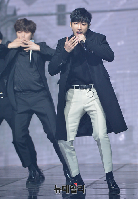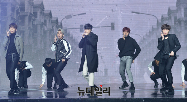 가수 진영이 28일 오후 서울 광진구 예스24라이브홀에서 열린 B1A4 정규3집 앨범 'GOOD TIMING' 쇼케이스에서 열창하고 있다.