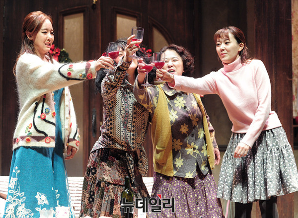 연극 '꽃의 비밀'의 주연배우들(왼쪽부터 소유진, 배종옥, 이선주, 김보정)이 28일 오후 서울 대학로 DCF 대명문화공장에서 열린 프레스콜에서 하이라이트 공연을 시연하고 있다.이날 행사에는 장진 연출, 배우 소유진, 배종옥, 이청아 등이 참석했다.