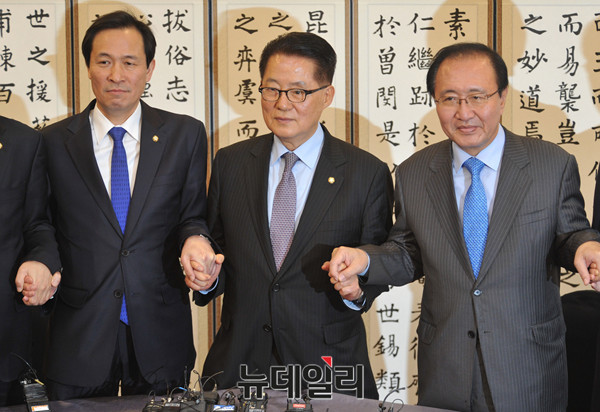 우상호 더불어민주당, 박지원 국민의당, 노회찬 정의당, 원내대표가 29일 오후 국회 귀빈식당에서 최순실 게이트 특검 논의를 위해 회동을 갖고 있다.