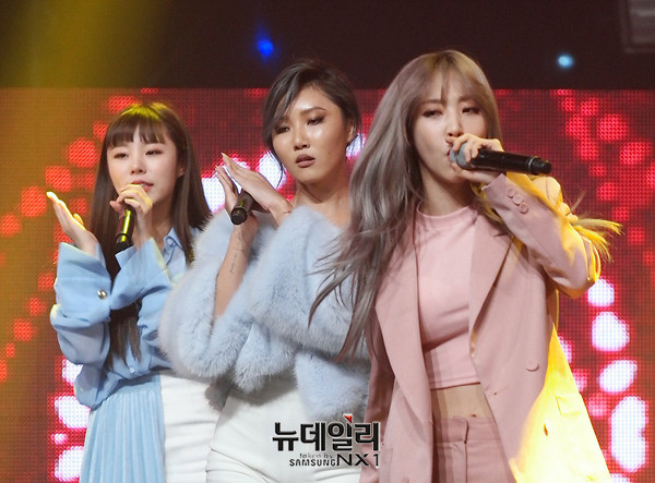 그룹 마마무(MAMAMOO : 솔라, 문별, 휘인, 화사)가 30일 오후 일산 MBC드림센터에서 열린 생방송 '쇼 챔피언(SHOW CHAMPION)'에서 신곡 '데칼코마니(Decalcomanie)'를 열창하고 있다.