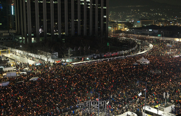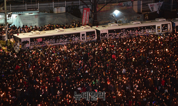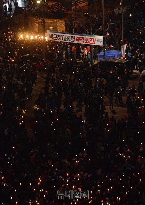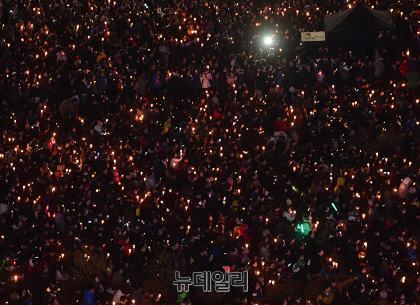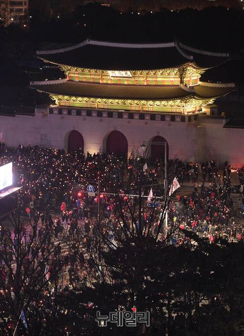 박근혜 대통령 퇴진을 촉구하는 떼촛불집회가 3일 오후 광화문 일대에서 진행됐다. 집회 참가자들은 광화문 앞 무대에서 공연을 관람하고, 청와대로 향하는 등 목소리를 높였다.