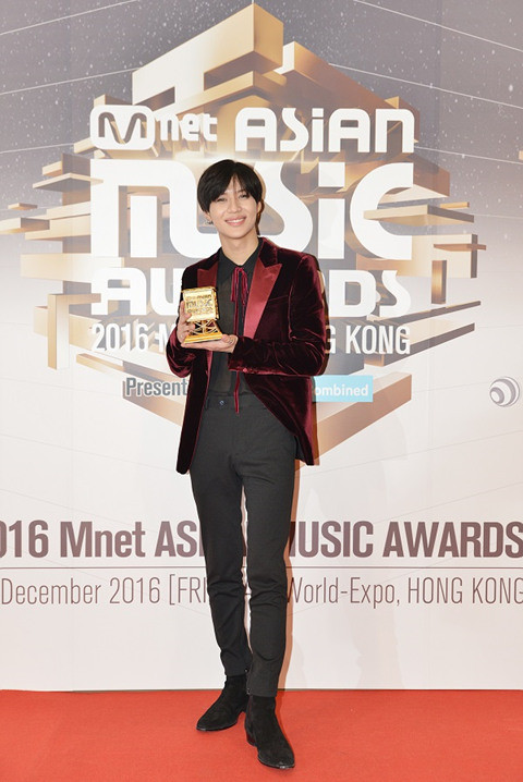 '2016 마마(Mnet Asian Music Awards)'시상식에서 베스트 댄스 퍼포먼스 솔로상을 수상한 샤이니 태민이지난 2일 홍콩AWE(AsiaWorld-Expo) 'Thanks Zone'에서 트로피와 함께 포토타임을 갖고 있다. (사진=CJ E&M)
