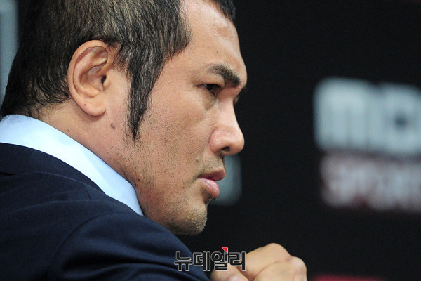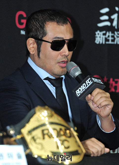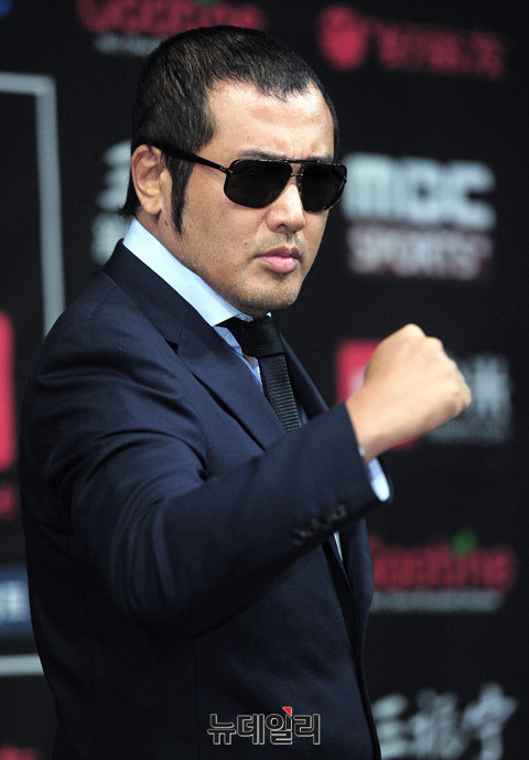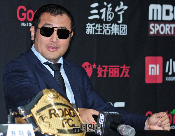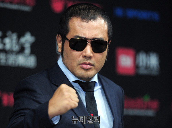 배우 김보성이 5일 오전 서울 강남구 'ROAD FC 압구정GYM'에서 열린 사랑나눔 프로젝트 '소아암 환자 돕기 김보성 ROAD FC 데뷔'기자간담회에서 포토타임을 갖고 있다.