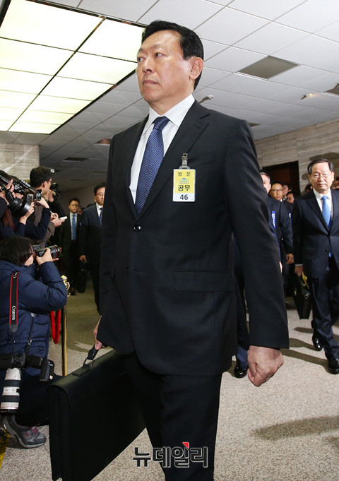 신동빈 롯데그룹 회장이 6일 오전 국회에서 열린 '최순실 국정농단 진상규명' 국정조사 특별위원회 1차 청문회 증인으로 출석하고 있다. (사진=사진공동취재단)