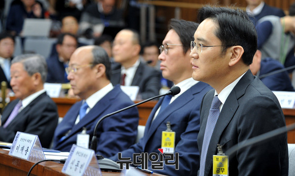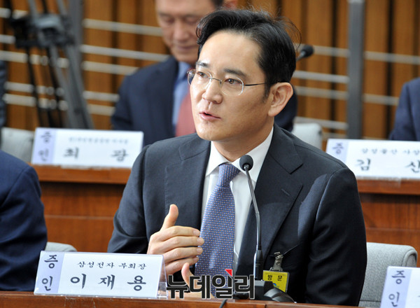 삼성전자 이재용 부회장이 6일 오전 국회에서 열린 '박근혜 정부의 최순실 등 민간인에 의한 국정농단 의혹사건 진상규명을 위한 국정조사'에서 위원들의 질문에 답하고 있다. (사진=공동취재단)