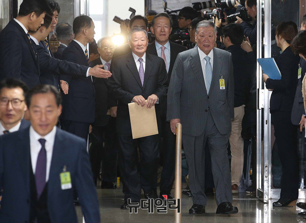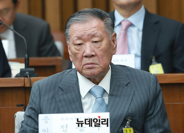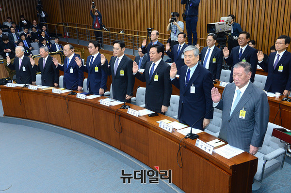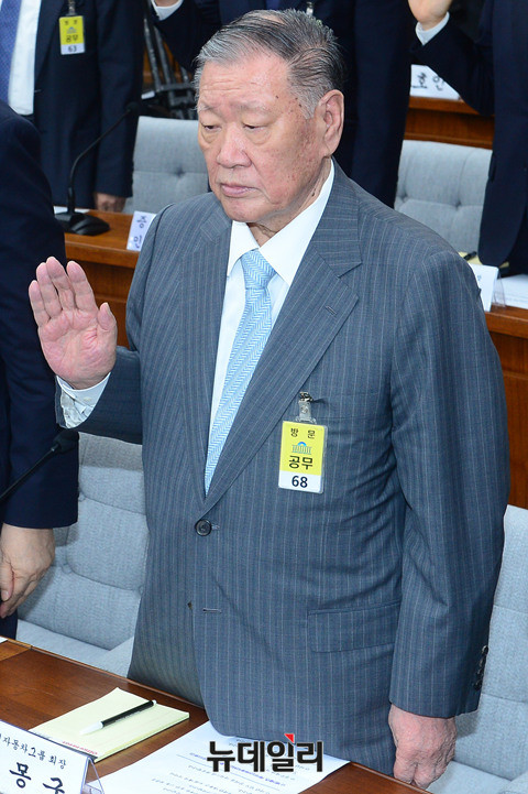 정몽구 현대자동차그룹 회장이 6일 오전 국회에서 열린 '박근혜 정부의 최순실 등 민간인에 의한 국정농단 의혹사건 진실규명을 위한 국정조사특위 제1차 청문회'에 증인으로 출석해 증인 선서를 하고 있다. (사진=사진공동취재단)