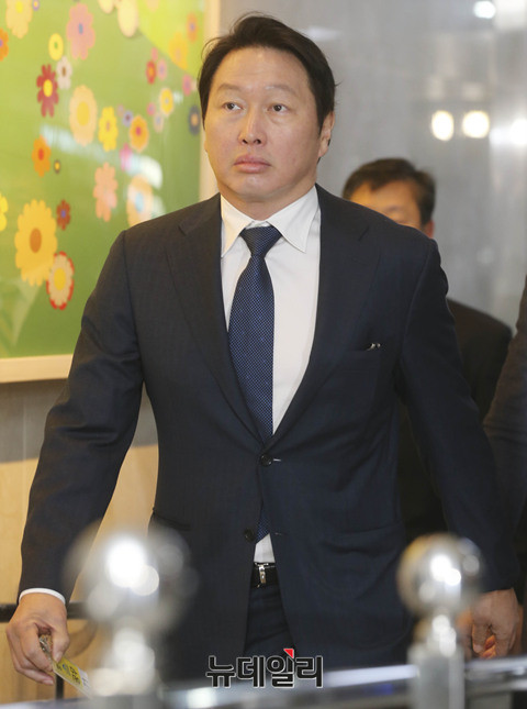 최태원 SK그룹 회장이 6일 오전 국회에서 열린 '최순실 국정농단 청문회'에 증인으로 출석하고 있다. (사진=사진공동취재단)