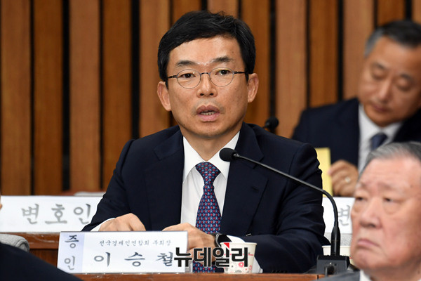 이승철 전경련 부회장이 6일 오전 국회에서 열린 '박근혜 정부의 최순실 등 민간인에 의한 국정농단 의혹 사건 진상 규명을 위한 국정조사 특별위원회'에 출석해 의원들의 질의에 답변을 하고 있다. (사진=사진공동취재단)