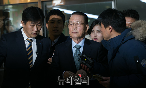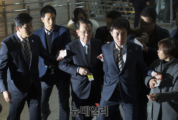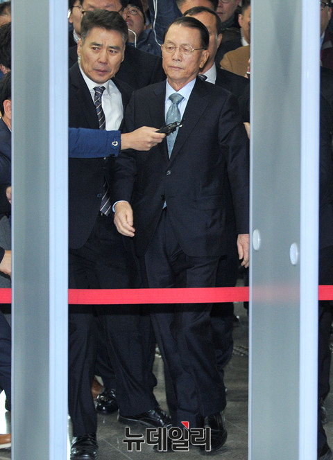 김기춘 전 청와대 비서실장이 7일 오전 국회에서 열린 '최순실 게이트' 진상 규명을 위한 국회 국정조사 특별위원회 2차 청문회에 출석하기 위해 출입문을 들어서고 있다. (사진=공동취재단)