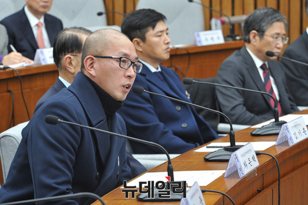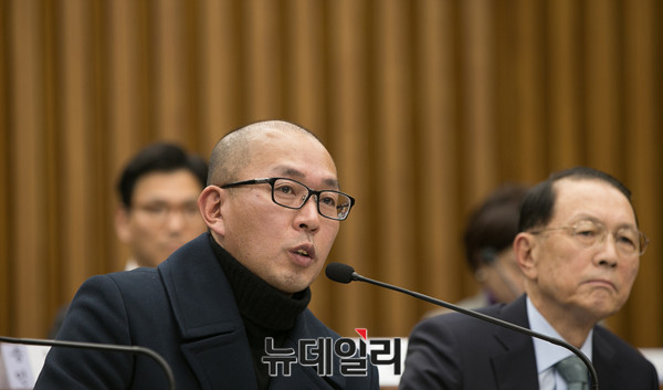 차은택 전 창조경제추진단장이 7일 국회에서 열린 '최순실 국정농단 진상규명을 위한 국정조사 2차 청문회'에 참석해 위원들의 질문에 답하고 있다. (사진=공동취재단)