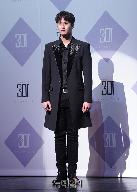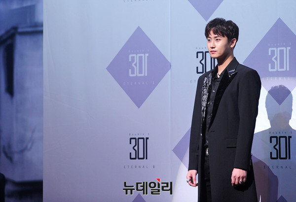 더블에스301(SS301 : 허영생, 김규종, 김형준) 허영생이 8일 오후 이화여자대학교 삼성홀에서 두 번째 미니앨범 '이터널 0(ETERNAL 0)', '이터널 1'발매기념 쇼케이스에서 포토타임을 갖고 있다.