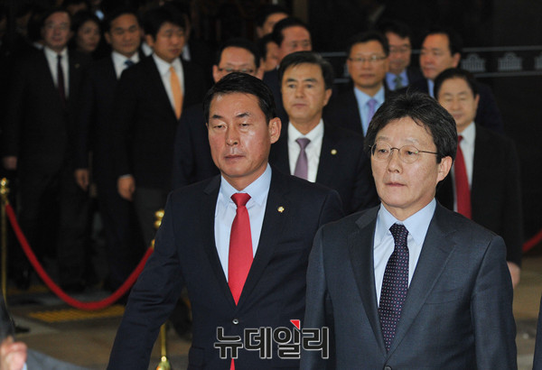 새누리당 유승민 의원과 황영철 의원이 9일 오후 국회 본회의장에서 열린 박근혜 대통령에 대한 탄핵소추안이 표결이 끝나자 회의장을 빠져 나오고 있다.