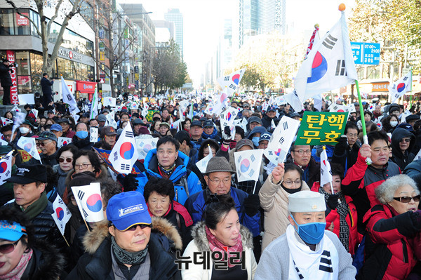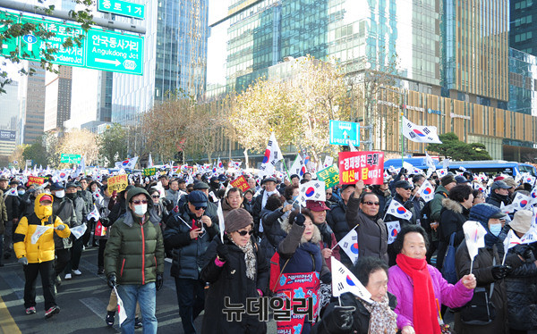 집회에 참석한 애국단체 회원들과 시민들(주최 측 추산 23만 명)은 태극기를 흔들며 '선동 탄핵 무효'를 외쳤다.
