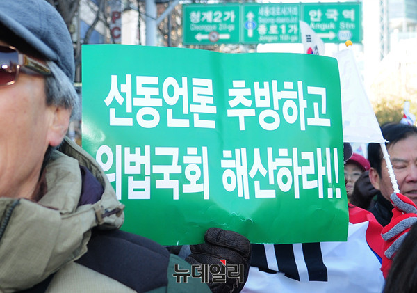 박근혜 대통령 탄핵 무효를 주장하는 애국단체가 10일 오전 서울 청계광장에서 '탄핵무효국민총궐기대회'를 열고 청계광장에서 대학로 마로니에 공원까지 거리행진을 이어갔다.