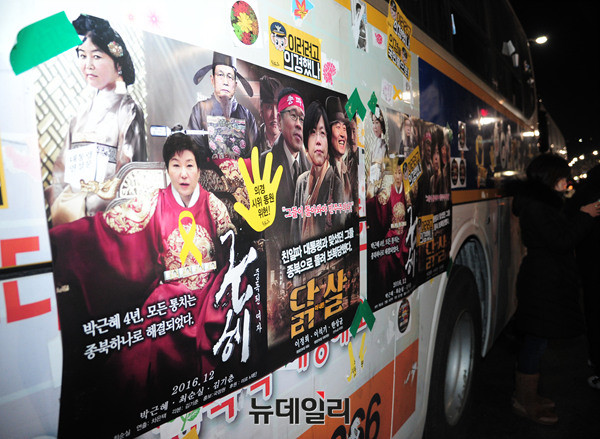 탄핵소추안이 가결된 후 열린 첫 집회에서 참가자들은 '박근혜는 즉각 퇴진하라', ''황교안은 물러가라' 등의 구호를 외쳤다. 이날 집회에는 경찰추산 9만 명(주최측추산 60만 명)이 참석했지만 통행의 불편함은 없었다.