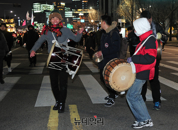 탄핵소추안이 가결된 후 열린 첫 집회에서 참가자들은 '박근혜는 즉각 퇴진하라', ''황교안은 물러가라' 등의 구호를 외쳤다. 이날 집회에는 경찰추산 9만 명(주최측추산 60만 명)이 참석했지만 통행의 불편함은 없었다.