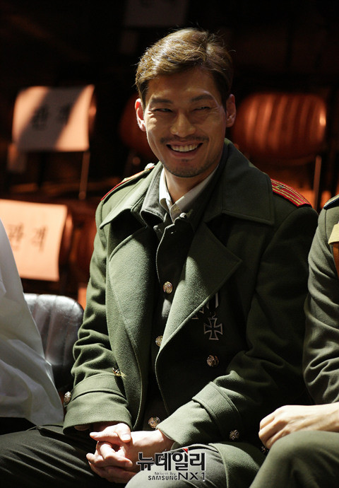 배우 박훈이 13일 오후 서울 종로구 홍익대대학로아트센터 소극장에서 열린 연극 '벙커 트릴로지(BUNKER TRILOGY, 연출 김태형)' 프레스콜에서 하이라이트 장면을 시연하고 있다.