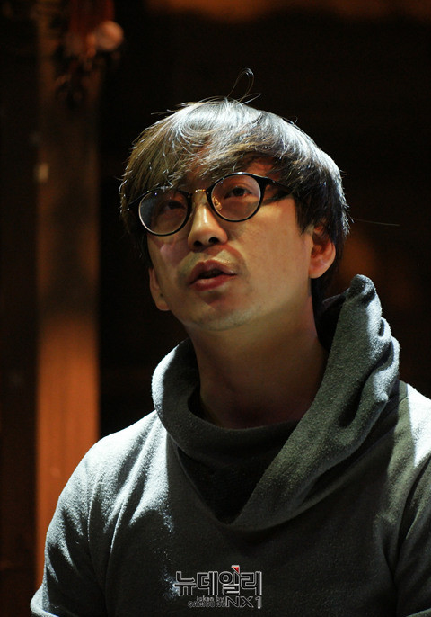 연출가 김태형이 13일 오후 서울 종로구 홍익대대학로아트센터 소극장에서 열린 연극 '벙커 트릴로지(BUNKER TRILOGY, 연출 김태형)' 프레스콜에 참석해 질문에 답하고 있다.