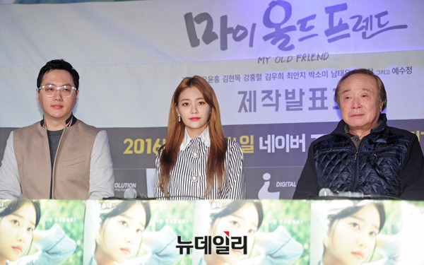웹드라마 '마이올드프렌드(My Old Friend)'의 이한종 감독, 배우 문창근, 서유나가 13일 오후 서울 마포구 스테이라운지에서 열린 제작발표회에서 포토타임을 갖고 있다.