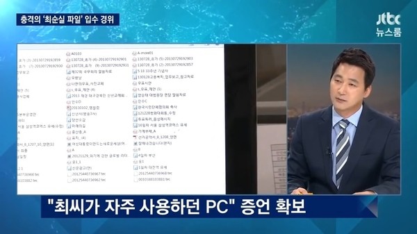 이날 JTBC 뉴스룸은 취재진이 단독입수한 'PC 모니터 화면'을 띄운 뒤 "최순실의 여러 사무 공간 중 한 곳에서 최씨가 건물 관리인에게 처분해달라고 부탁한 짐 속에서 해당 PC를 발견했다"고 보도했다.