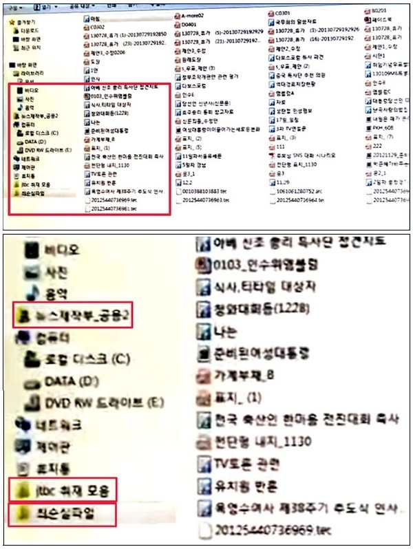 실제로 해당 화면에는 상위 폴더명에 '뉴스제작부 공용', 'JTBC 취재모음', '최순실 파일' 같은 이름들이 나열돼 있었다. 이는 태블릿PC에 있던 '파일 복사본'을 옮겨놓은 JTBC 취재진의 PC 모니터를 촬영한 것으로 추정된다.