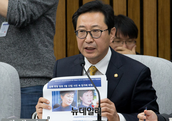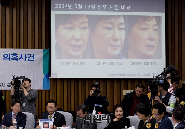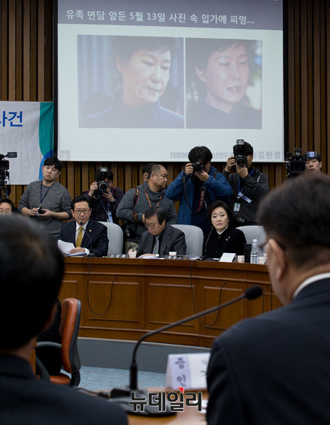 더불어민주당 김한정 의원이 14일 오전 국회에서 열린 '박근혜 정부의 최순실 등 민간인에 의한 국정농단 의혹사건 진상규명을 위한 국정조사 3차 청문회'에서 박근혜 대통령의 피부시술 등 의혹과 관련해 질의를 하고 있다. (사진=사진공동취재단)
