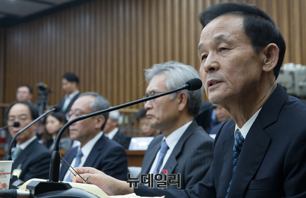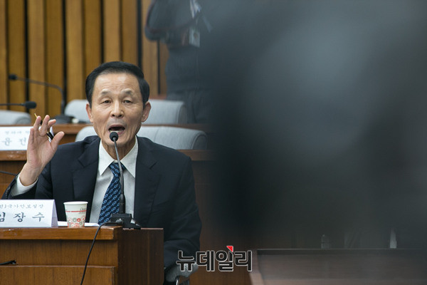 김장수 전 국가안보실장이 14일 오후 국회에서 열린 '박근혜 정부의 최순실 등 민간인에 의한 국정농단 의혹사건 진상규명을 위한 국정조사특별위원회 제3차 청문회'에서 의원 질의에 답하고 있다. (사진=사진공동취재단)