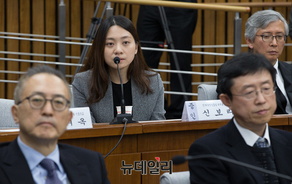 신보라 전 청와대 간호장교가 14일 오후 국회에서 열린 '박근혜 정부의 최순실 등 민간인에 의한 국정농단 의혹사건 진상규명을 위한 국정조사특별위원회 제3차 청문회'에서 의원 질의에 답하고 있다. (사진=사진공동취재단)