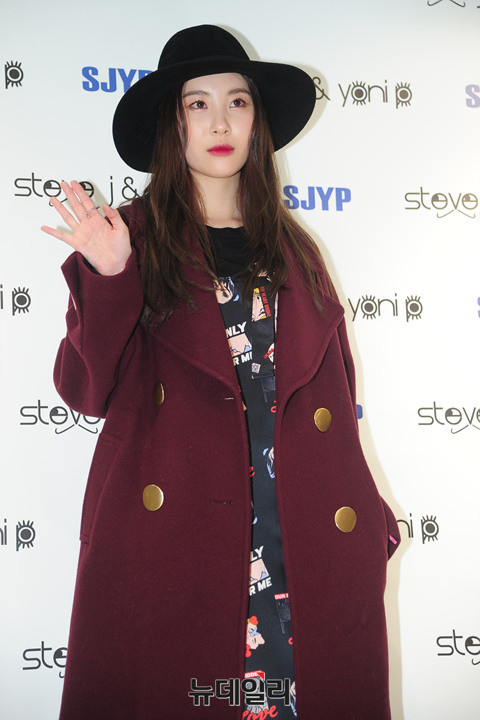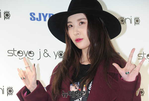 가수 선미가 14일 오후 서울 명동 '스티브J&요니P(SteveJ&YoniP)' 플래스쉽 스토어에서 열린 오픈 기념행사에 참석해 포토타임을 갖고 있다.