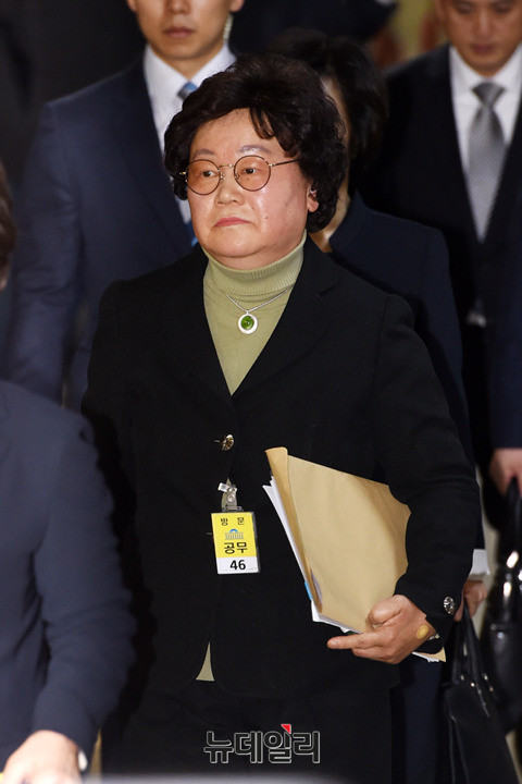 김경숙 전 이화여자대학교 체대학장이 14일 오전 국회에서 열린 '박근혜 정부의 최순실 등 민간인에 의한 국정농단 의혹 사건 진상 규명을 위한 국조특위 제4차 청문회'에 입장하고 있다. (사진=사진공동취재단)