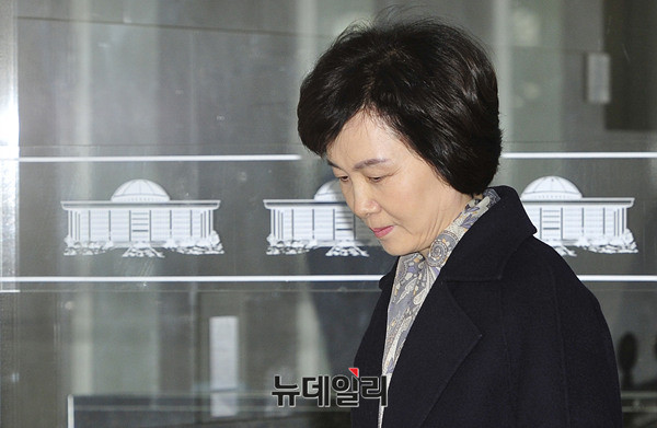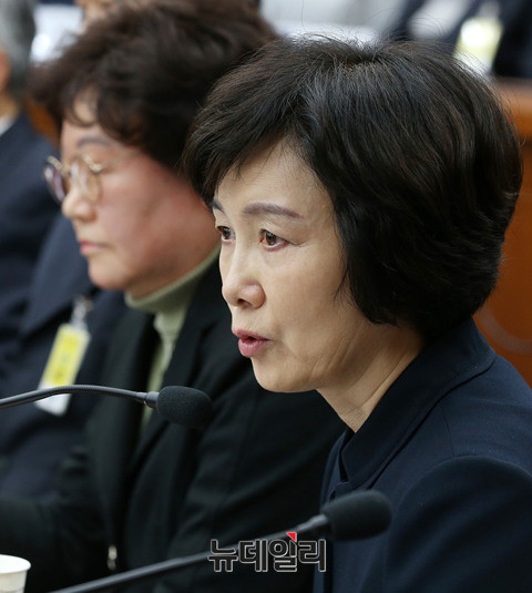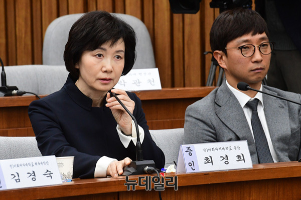 최경희 전 이화여대 총장이 14일 오전 국회에서 열린 '박근혜 정부의 최순실 등 민간인에 의한 국정농단 의혹 사건 진상 규명을 위한 국조특위 제4차 청문회'에서 의원들의 질의에 답하고 있다. (사진=사진공동취재단)