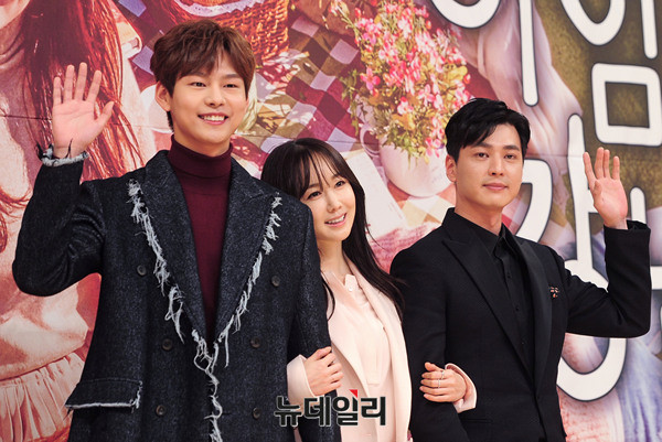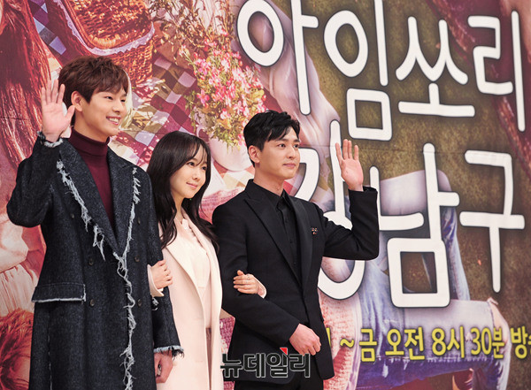 드라마 '아임쏘리 강남구'의 주연 박선호, 김민서, 이인이 지난 14일 오후 서울 목동 SBS에서 열린 제작발표회에 참석해 포토타임을 갖고 있다.