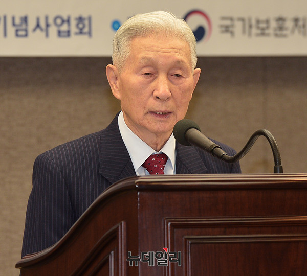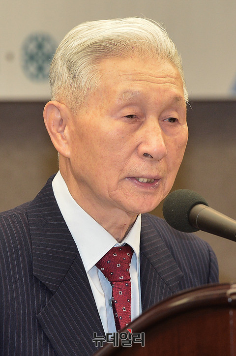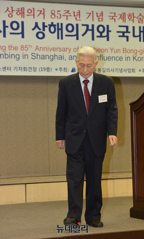 김진우 매헌윤봉길의사기념사업회장이 16일 오전 한국프레스센터에서 열린 '매헌윤봉길의사 상해의거 85주년 기념 국제학술회의'에서 인사말을 하고 있다.