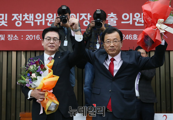 정 의원은 새누리당 재적의원 총 128명 중 119명이 참석한 원내대표 경선에서 62표를 획득, 비박(非박근혜)계 나경원(55표) 의원을 제치고 승리했다.