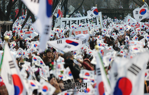 박사모를 비롯한 애국단체가 17일 오전 11시부터 안국역 인근에서 박근혜 대통령 탄핵을 반대하는 대규모 집회를 열고 '국회해산', '탄핵무효' 등의 구호를 외치고 있다. 이날 집회 참가자들은 태극기를 흔들며 집회에 임했다. 주최 측은 대형태극기와 장미꽃을 준비했다.