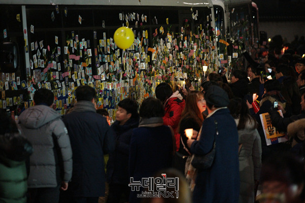 이날 오후부터 광화문 광장에서 진행된 떼촛불 집회는 인원이 눈에 띄게 줄었다. 광화문에서 각종 행사로 집회를 시작한 참가자들은 청와대 '박근혜 구속, 황교안 퇴진'을 외치며 청와대로 행진했다.