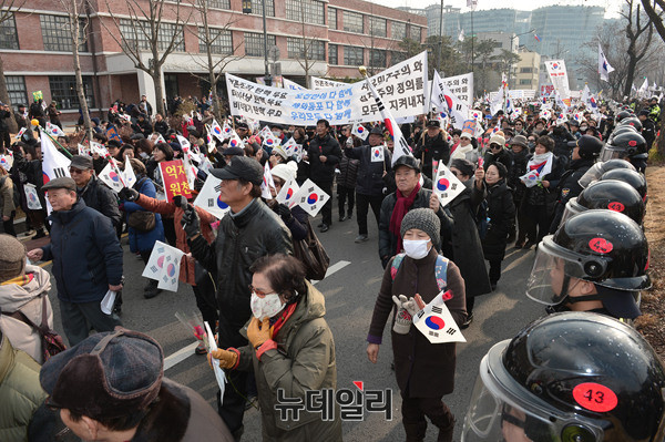 참가자들은 이날 오전 11시부터 헌법재판소 인근에서 박근혜 대통령 탄핵을 반대하는 대규모 집회를 열고 '국회해산', '탄핵무효' 등의 구호를 외쳤다. 참가자들은 태극기를 흔들며 집회에 임했다. 주최 측은 대형태극기와 장미꽃을 준비했다.