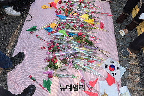 청와대 인근 삼청로까지 가두행진을 이어간 참가자들은 박근혜 대통령에게 전달 될 장미꽃을 헌화하고, 직접 쓴 손편지를 놓아두기도 했다.