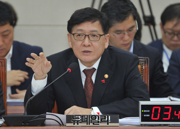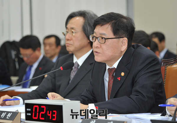 정진엽 보건복지부 장관이 19일 오전 국회에서 열린 보건복지위원회 전체회의에서 의원들의 질문에 답하고 있다.