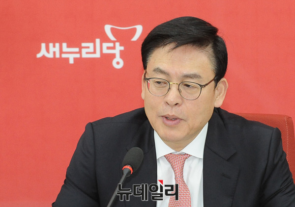 정우택 새누리당 신임 원내대표가 19일 오전 국회에서 열린 새누리당 원내대표 기자간담회에 참석해 모두발언하고 있다.