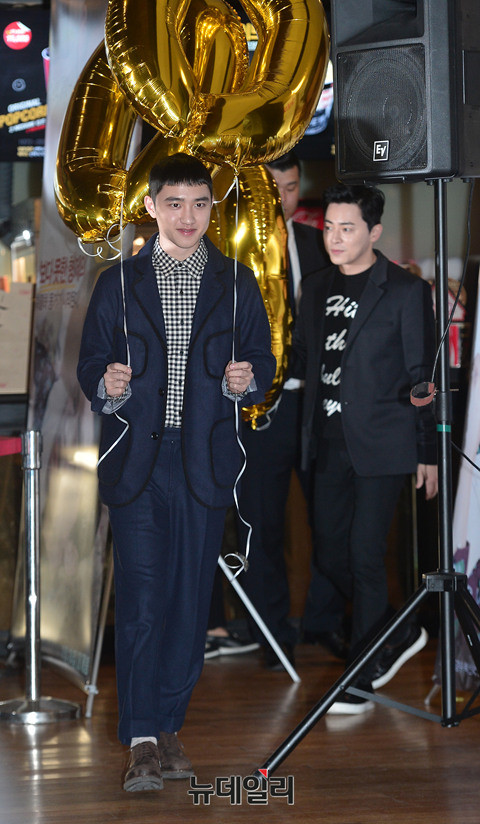 앞서 조정석과 도경수는 영화 '형'이 300만 돌파시 관객들에게 커피를 선물하겠다는 공약을 한 바 있다. 영화 '형'은 사기전과 10범의 형(조정석)과 국가대표 동생(도경수)의 동거 스토리를 그린 코미디물로 상영 중이다.