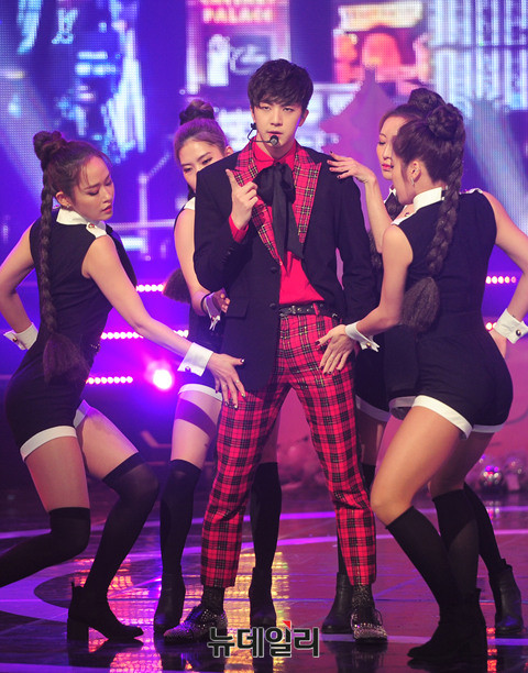 가수 천둥이 21일 오후 일산 MBC드림센터에서 열린 생방송 '쇼 챔피언(SHOW CHAMPION)'에서 '사인(SIGN)'을 열창하고 있다.